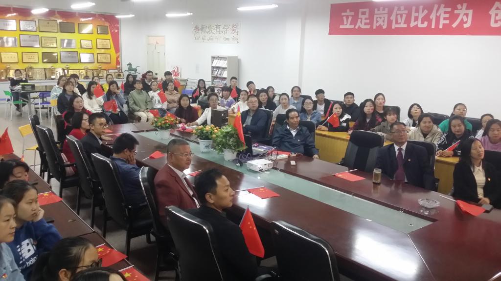 公司组织师生在文科实训楼开展“庆祝新中国成立70周年”系列活动,通过“歌唱我的祖国”,观看“阅兵式”等活动,营造了欢乐祥和的节日氛围,鼓舞了大家爱国热情,每个人脸上都洋溢者幸福的笑脸,共同祝福祖国生日快乐!更加繁荣昌盛!