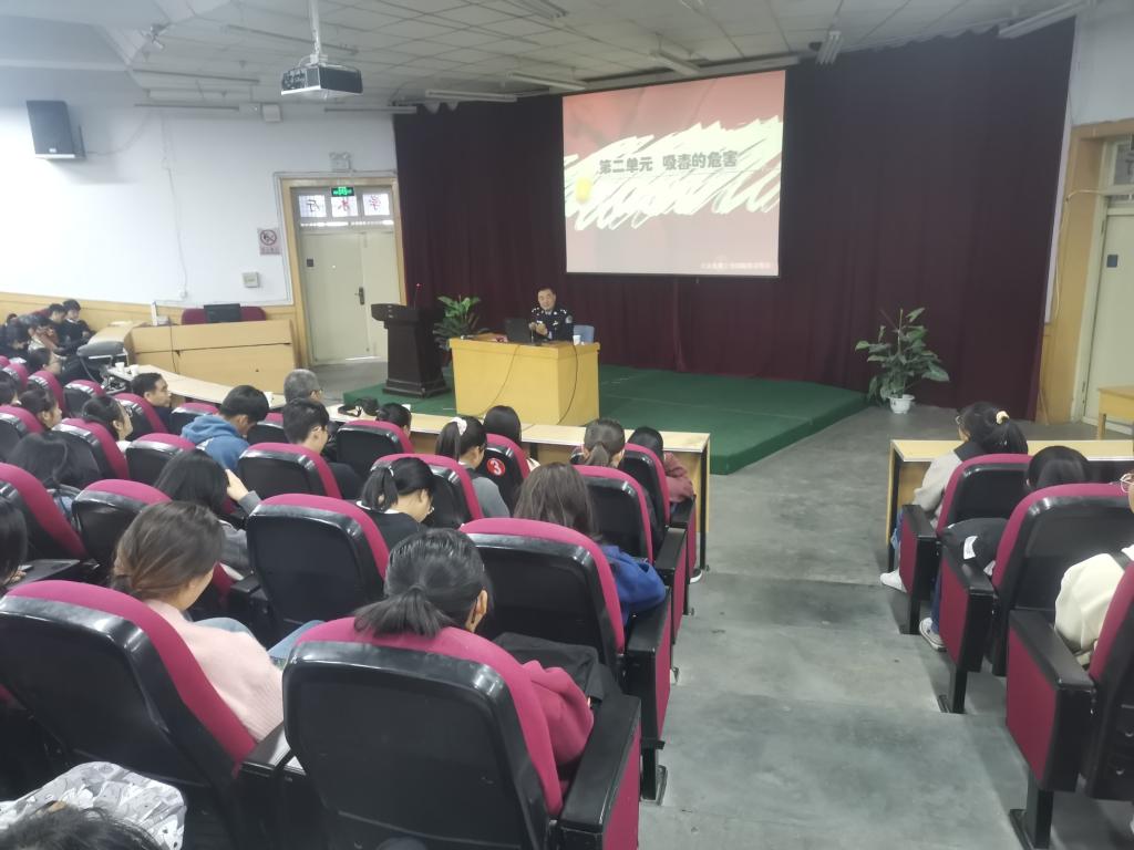 为进一步提高公司员工对毒品的防范意识,杜绝师生吸毒涉毒,营造良好的学习成长环境,创建“无毒校园”。bevictor1946韦德官网于11月4日下午在学术二厅开展了以“健康人生,绿色无毒”为主题的校园禁毒宣传教育专题讲座。甘肃省第三强制隔离戒毒所教育矫正中心陈新宝主任主讲。教师教育公司党委书记李鹏、副经理雒焕国及三百多名师生聆听了讲座。