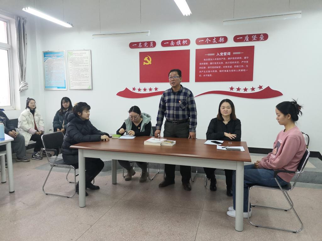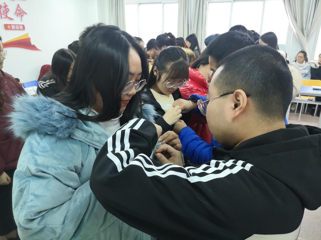 仪式在奏唱国际歌开始,张晓娟宣读了预备党员名单并表示祝贺,正式党员为预备党员佩戴党徽后,在张静怡的领誓下,全体党员面对党旗进行了庄严宣誓。预备党员代表张植淋发言,向党组织表明决心,要努力学习,奋发进取,扎实工作,用实际行动践行誓言。雒进才对预备党员提出了几点要求与期望,强调要进一步纯洁入党动机,要加强理论学习,加强党性修养,提高自身素质,坚定为党、国家和人民的教育事业奋斗终身的理想信念,一定要在今后的学习生活和工作中起到先锋模范带头作用。最后在奏唱中华人民共和国国歌后宣誓仪式圆满结束。
