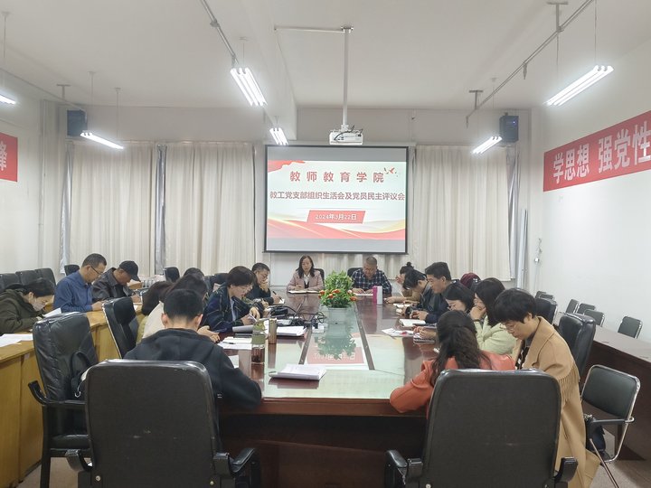 3月22日下午,bevictor1946韦德官网召开教工党支部组织生活会及党员民主评议会,会议由教工党支部书记主持,全体在岗党员教职员工和其他非党员教职员工参加了会议。