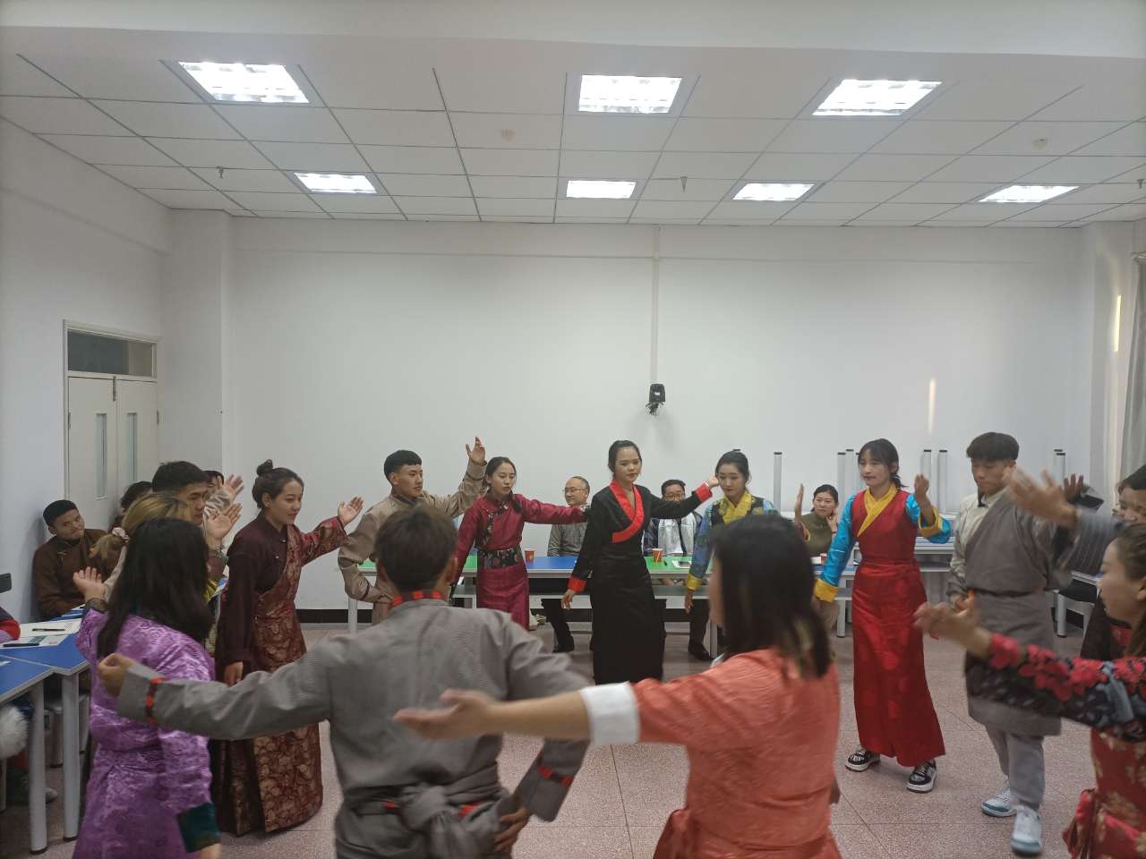 同学们分别以心得体会、诗歌朗诵和民族舞蹈三种形式进行汇报,汇报结束后,张成杰副部长对本次班会进行总结。张部长充分肯定了本次实践教学取得的成果,对同学们形式多样的汇报给予鼓励,同时向同学们讲述了公司创建全国民族团结进步示范单位的历程,最后对藏族同学提出了“努力学习科学文化知识、提高思想政治素养,回馈家乡、建设祖国”的希望。