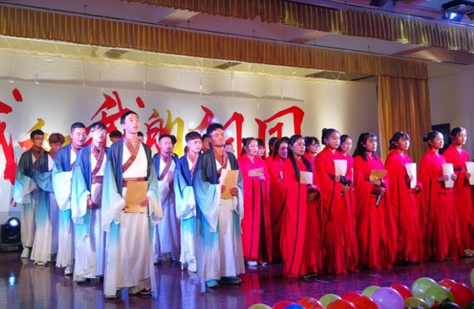 为了庆祝中华人民共和国成立70周年,“不忘初心、牢记使命”,加强民族大团结,提升专业建设水平,丰富校园文化,公司于9月27日晚上在团委多功能厅举办了“我和我的祖国” 小学教育专业西藏班专业技能汇报暨文艺演出,演出由“西藏乡情”、“专业展示”和“祝福祖国”三个篇章组成。