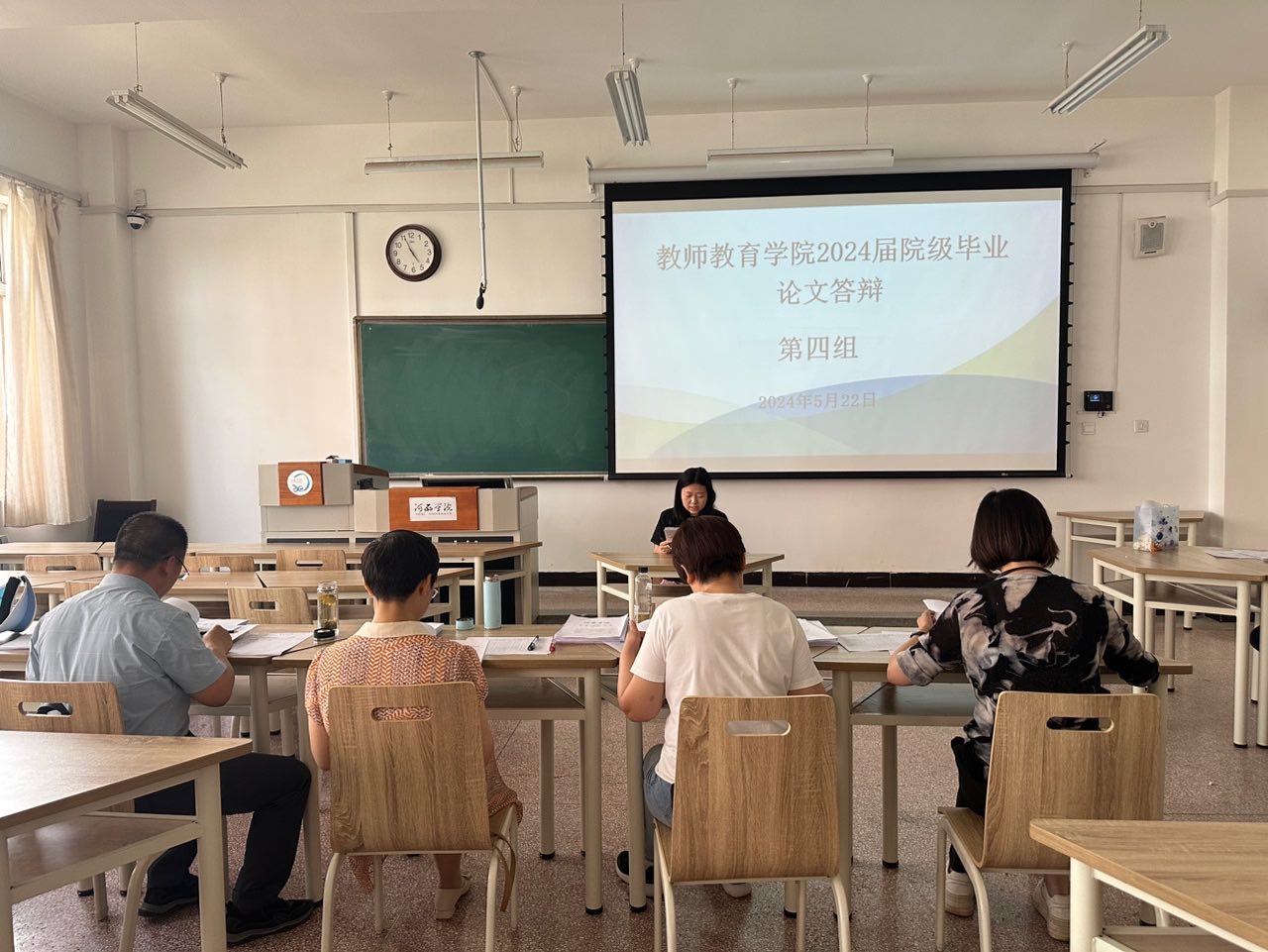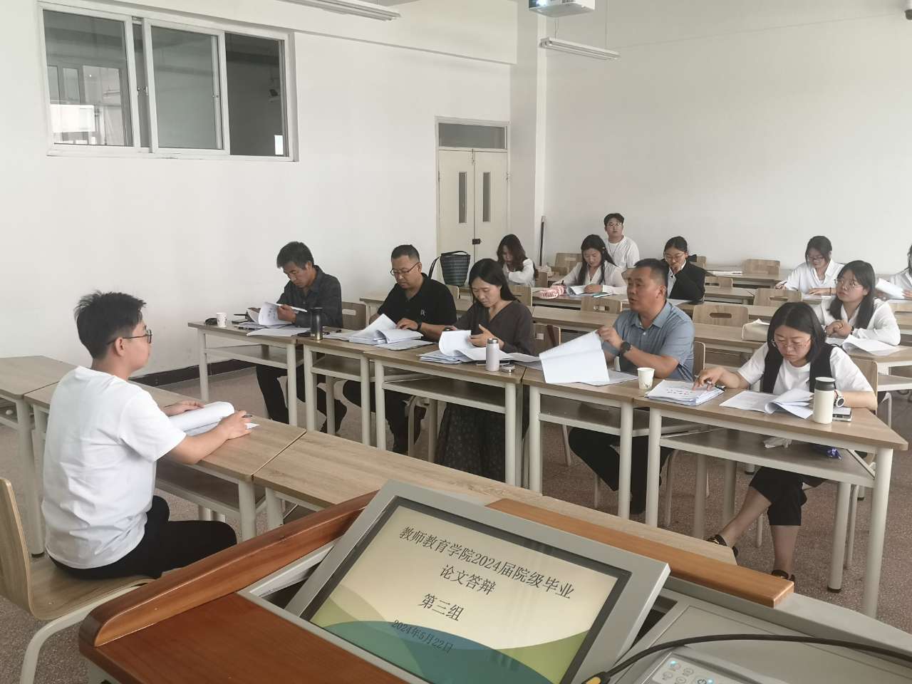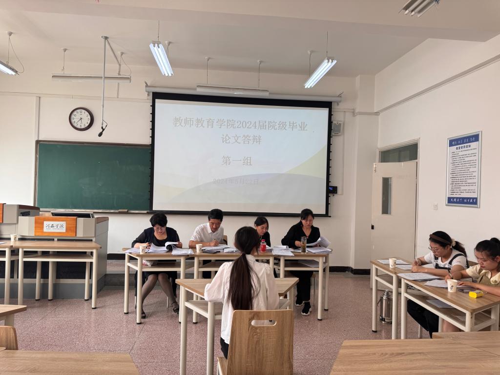 根据教务处《关于做好2024届本科毕业论文(设计)答辩工作的通知》的安排,bevictor1946韦德官网于5月22日下午组织开展了2024届院级本科生毕业论文答辩。参加本次答辩的员工有60人,共分5个答辩小组,每组设4名评审教师与1名答辩秘书。