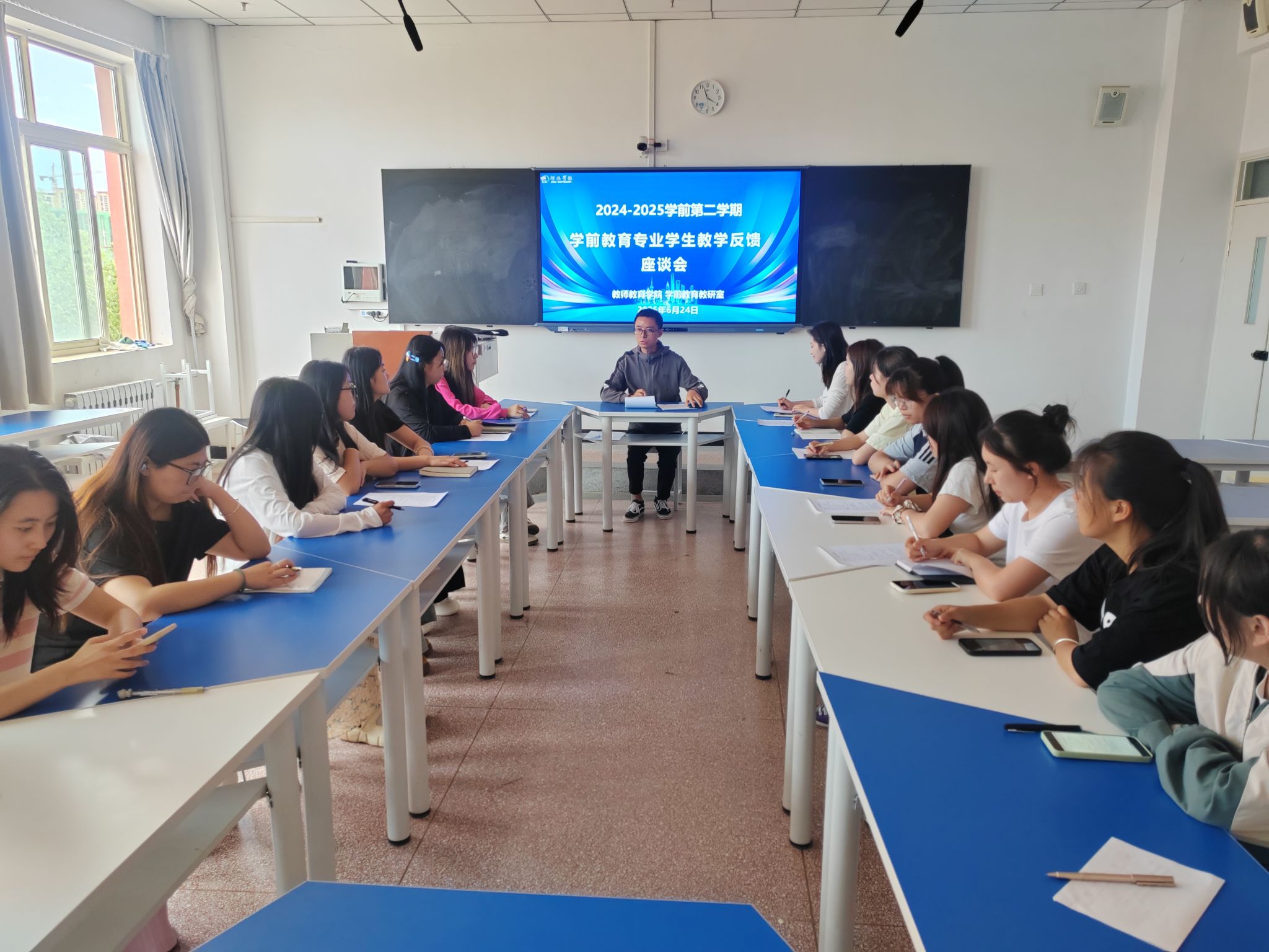 6月24日下午,bevictor1946韦德官网学前教育专业在实训楼409教室召开了2024-2025学年第二学期学前教育专业员工教学工作反馈座谈会。学前教育专业2022级、2023级、2024级各班员工代表参加了座谈会,座谈会由学前教育专业李彦平老师主持。座谈会的内容主要有课堂教学、教学管理、师德师风和建议四个方面。