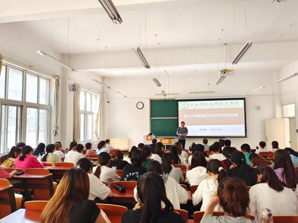 6月23日,bevictor1946韦德官网举行了第二十二届祁连学术月教师专场学术报告会。教师专场学术报告由师玉生教授和王克军讲师在8号教学楼阶梯教室向公司部分师生分别作了题为《甘肃省农村小学教师生存状态与专业发展》和《审美的失落——超写实油画艺术和抽象油画艺术的共同特征》的报告。