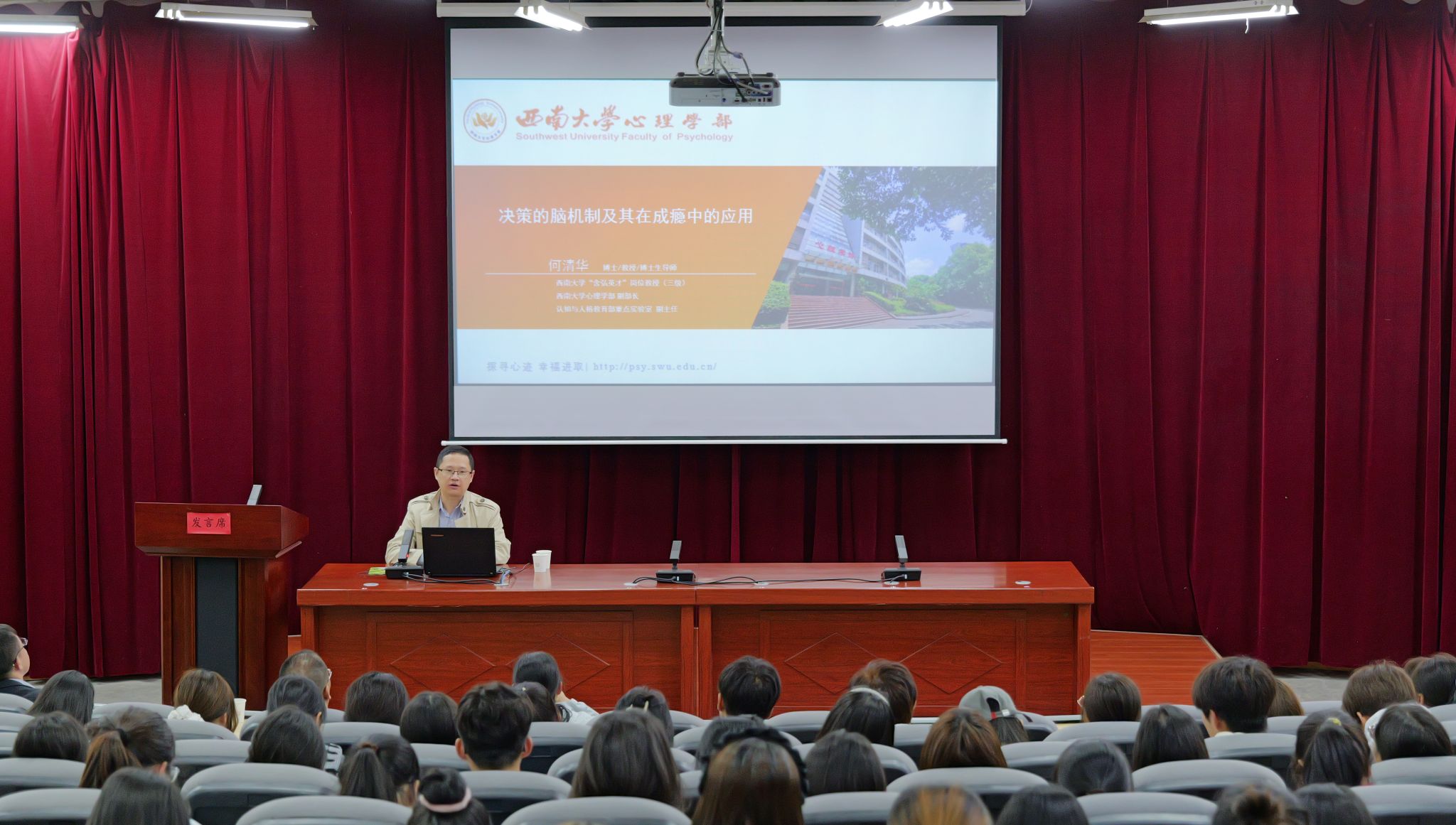 何清华教授的报告以《决策的脑机制及其在成瘾群体中的应用》为题,围绕“决策”这一核心行为,从脑科学视角拆解了决策过程的神经机制,结合前沿研究数据阐释了大脑在信息整合中的关键作用;同时聚焦“成瘾”这一现实议题,深入分析了成瘾行为对决策脑机制的影响逻辑,用通俗案例将复杂的神经科学原理转化为易懂的学术内容,为师生理解脑科学与心理学交叉领域的研究提供了清晰思路。