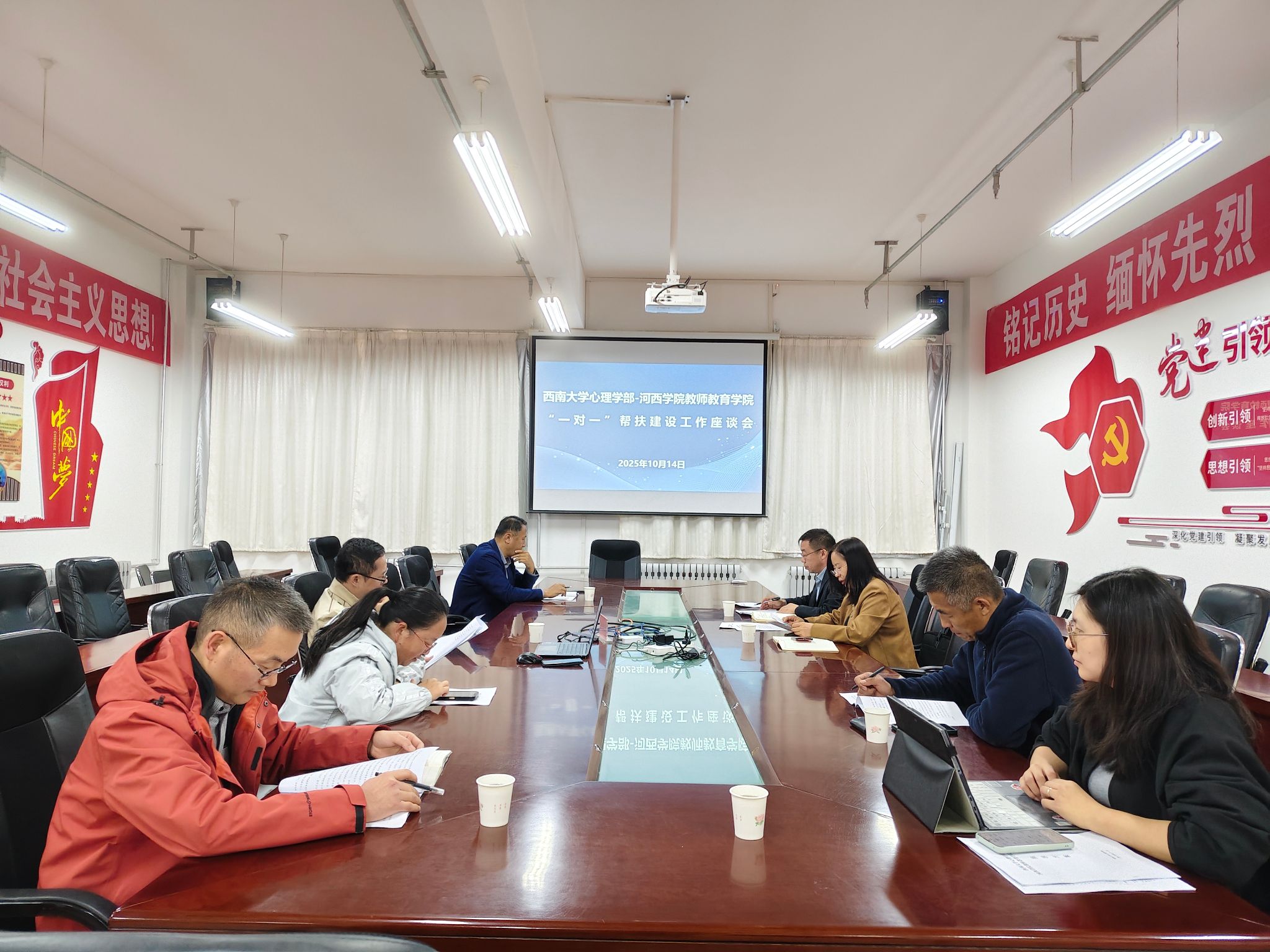 10月15日,何清华教授参与了西南大学心理学部—bevictor1946韦德官网“一对一”帮扶建设工作座谈会。会上,双方围绕团队建设规划、一流课程建设、研究生教育、科研合作路径等议题展开深入交流。何清华教授结合西南大学心理学部的学科优势,针对bevictor1946韦德官网在心理学相关课程设置、实践教学资源整合等方面的需求,提出了具体的帮扶建议,为后续双方精准对接帮扶任务、提升公司办学质量奠定了坚实基础。