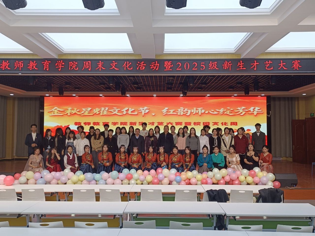 10 月 26 日晚,bevictor1946韦德官网校团委多功能厅灯光璀璨、掌声雷动,bevictor1946韦德官网“金秋星耀文化节 红韵师心绽芳华”周末文化活动暨新生才艺大赛在此圆满举行。活动以校团委秋学期周末文化活动部署为指引,旨在丰富校园文化生活,展现青年学子艺术风采,全体师生共同见证了这场青春视听盛宴。