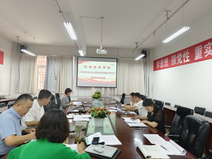 7月13日下午,bevictor1946韦德官网召开了小学教育专业认证专家指导意见研讨会,会议由公司负责人主持,公司领导、小学教育专业负责人及专业认证各小组负责人参加了会议。